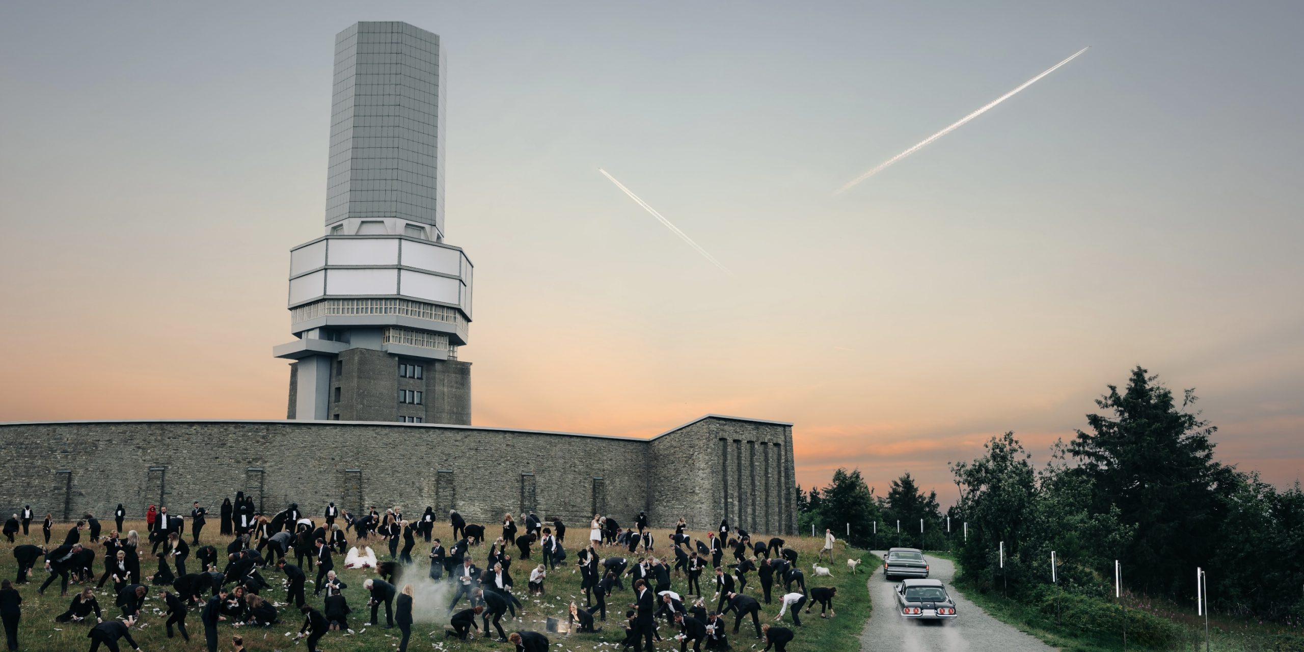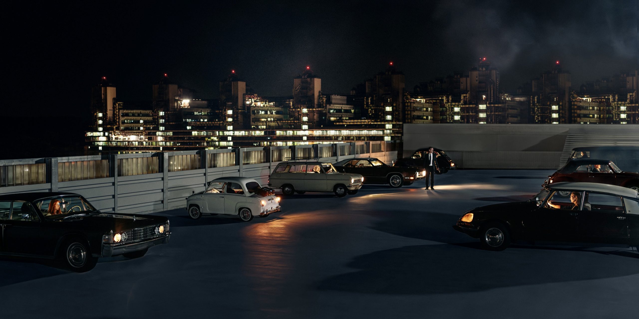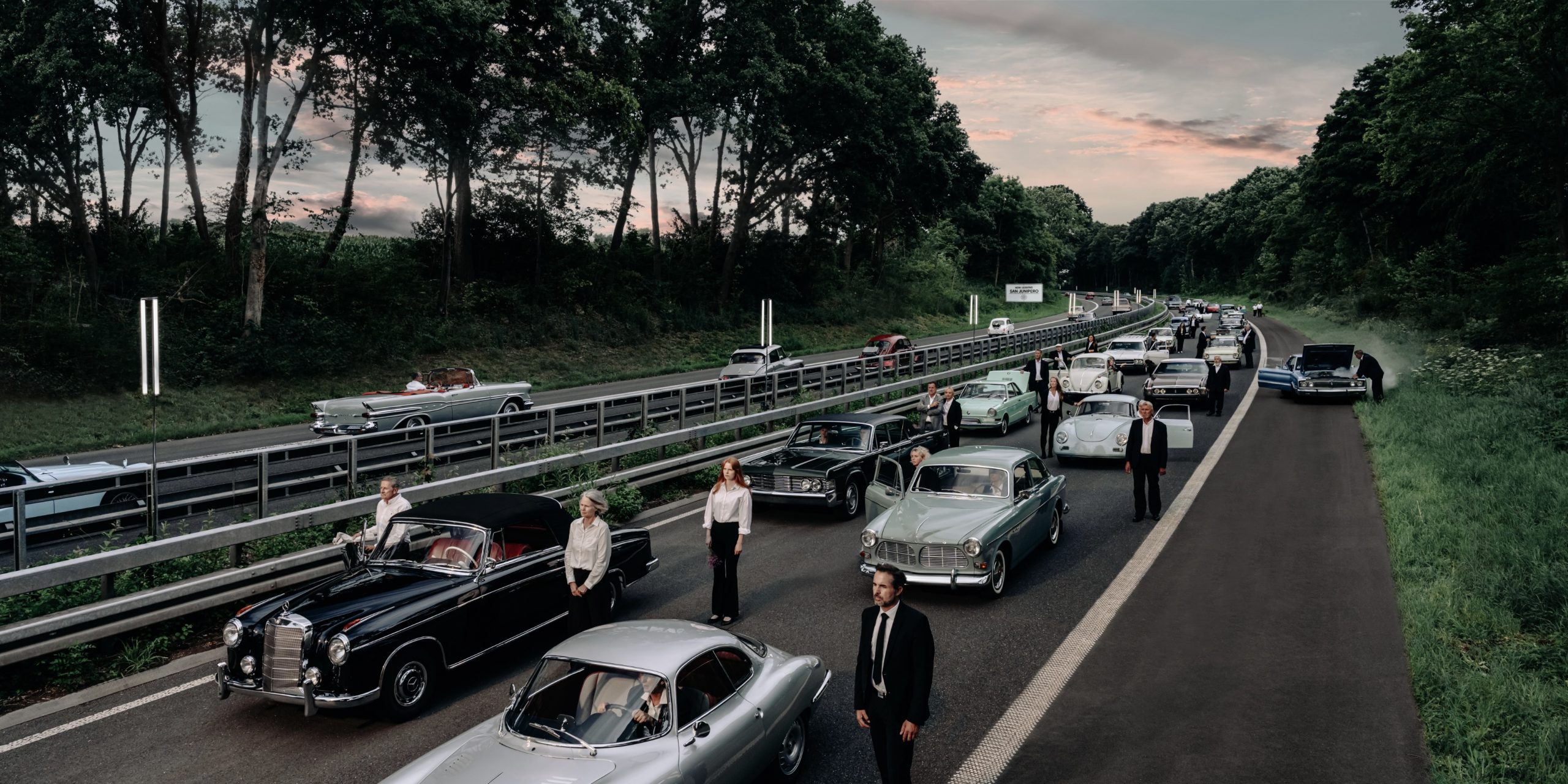 Detailverliebt inszeniert der junge Künstler Szenen, die an Film-Stills erinnern. Monatelange Vorbereitungen und eine Crew, die so groß ist, wie bei einer Kinofilm-Produktion - all das für ein einziges, wimmelbild-artiges Foto, auf dem man selbst nach einiger Zeit des Betrachtens immer wieder neue Details entdeckt. Dutzende Oldtimer, zahlreiche Menschen und unzählige Requisiten werden kombiniert mit besonderem SFX-Make-Up, aufwendigen Kostümen und sorgfältiger Nachbearbeitung. Moritz Koch nutzt verschiedene künstlerische Medien wie Düfte und Klänge, um ein immersives Eintauchen in die von ihm geschaffenen Welten zu ermöglichen. Seit 2023 arbeitet Koch auch mit einem völlig neuen Medium: der inszenierten 360°-Fotografie. Sein Ziel ist es, die Distanz zwischen dem klassischen Kunstwerk an der Wand und dessen Betrachter*in zu überwinden. Mit Hilfe von VR-Brillen soll ermöglicht werden, nicht nur vor, sondern zusätzlich auch im Bild stehen und sich darin sogar umsehen zu können.